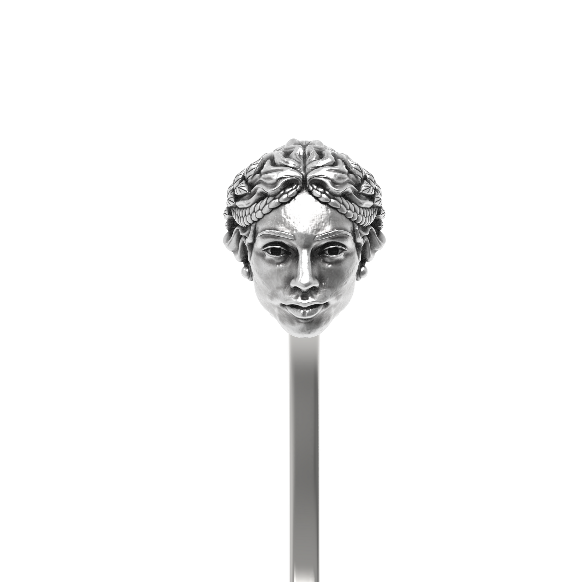 Évoquant la naissance de Vénus et ses attributs, colombe, cygne, coquillage, la pièce parle de douceur, de compassion, d’une élégance qui choisit la mesure. Au porté, l’embout affirme une féminité calme, sûre d’elle.