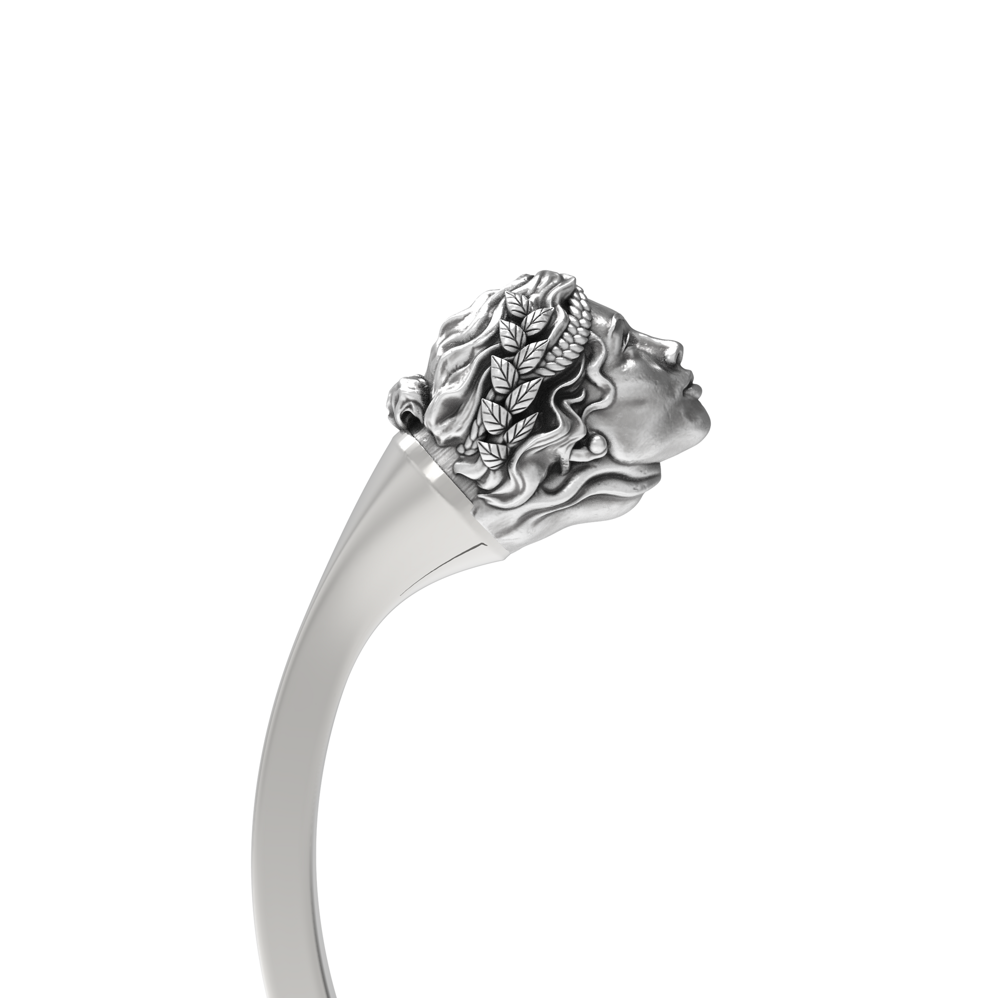 Sculpté en Argent 925, le modelé souligne les courbes et la pureté des lignes. Les hauteurs prennent un éclat délicat, les creux gardent une nuance douce, la silhouette reste lisible quand la main se déplace.